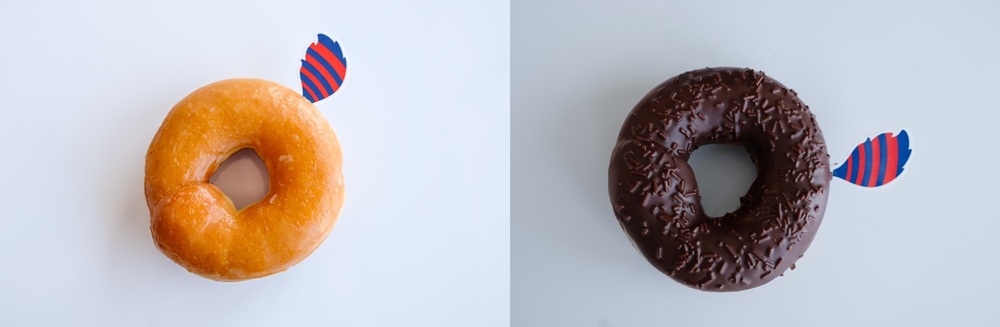 Basierend auf fluffigen, klebrigen frischen Donuts gibt es zwei Varianten: die plain Variante mit Zuckerglasur und die Schoko & Schoko Variante mit Schokolade und Schokostreuseln. Ein perfektes Zusammenspiel aus fluffigem, aromatischem Donutteig und der Süße von Zucker und Schokolade!
