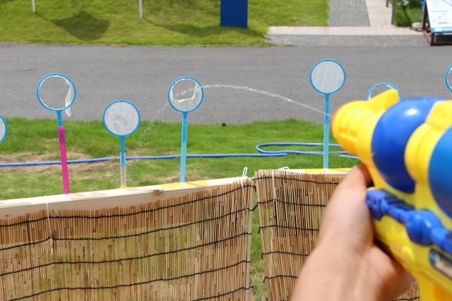 Ein Bereich, in dem man frei mit Wasser spielen kann, indem man hohe Ballons aufstellt oder sich versteckt und sich gegenseitig mit Wasserpistolen nass macht! Zur Abdeckung zum Verstecken werden auch Spieler-Panels erscheinen, also freuen Sie sich darauf.