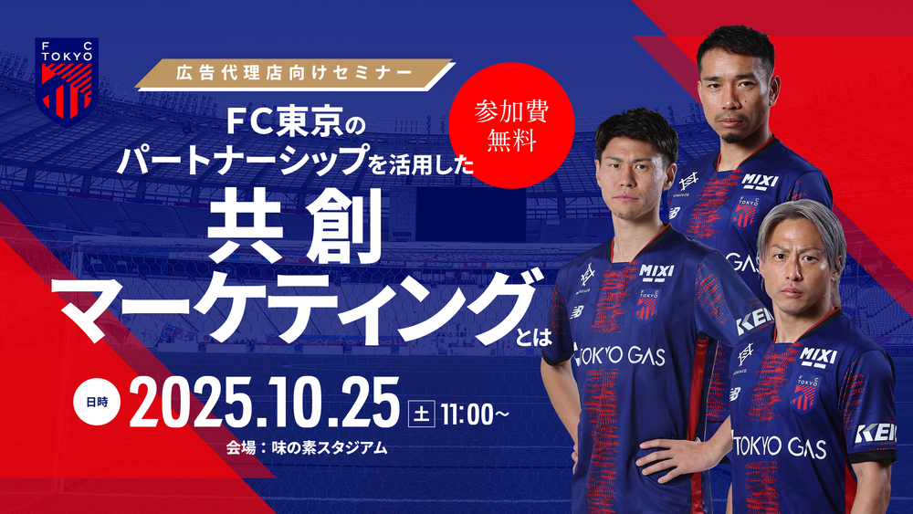 Wir veranstalten ein Seminar für Werbeagenturen mit dem Titel „Kooperationsmarketing unter Nutzung der Partnerschaften von FC Tokyo“. Anhand der Partnerschaften von FC Tokyo, die die Kommunikationskraft des Sports und gesellschaftliche Verbindungen nutzen, stellen wir Beispiele vor, wie Unternehmens- und gesellschaftliche Herausforderungen angegangen werden.
