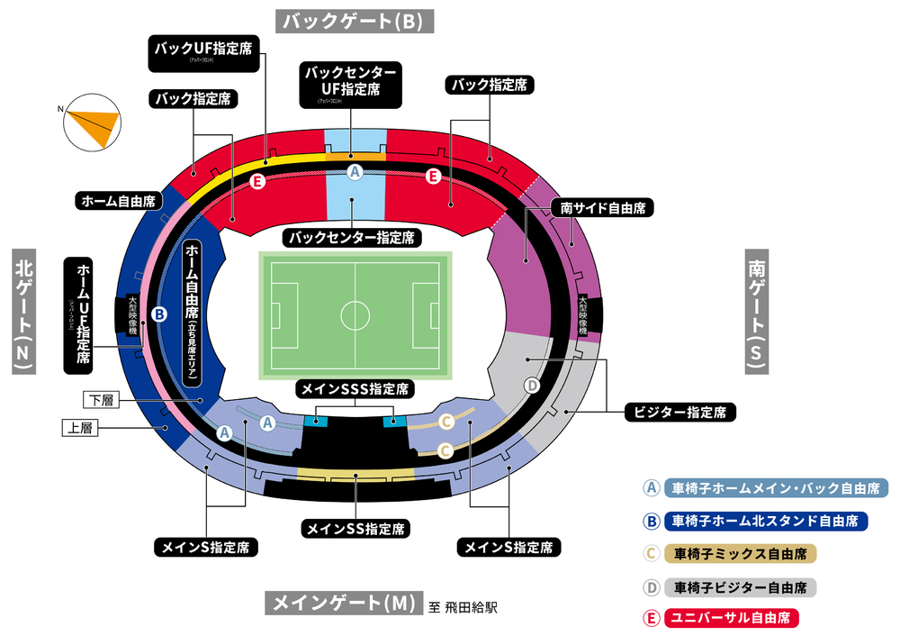 ※Das Tragen von Trikots und Fanartikeln der Gastmannschaft sowie das Anfeuern der Gastmannschaft ist nur in den unten genannten Bereichen erlaubt. Das Tragen von Fanartikeln der Gastmannschaft und das Anfeuern der Gastmannschaft sind außerhalb dieser Bereiche strengstens untersagt. Alle anderen Sitzbereiche sind ausschließlich für die Unterstützung von FC Tokyo vorgesehen.