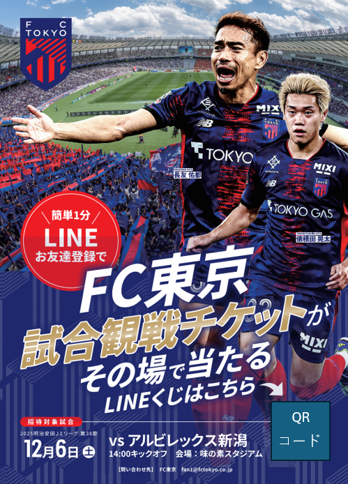Besuchen Sie den FC Tokyo Heimathafen-Stand und nehmen Sie an der exklusiven Garapon-Lotterie teil, wenn Sie Ihre J-League-ID mit FC Tokyos LINE verknüpft haben!