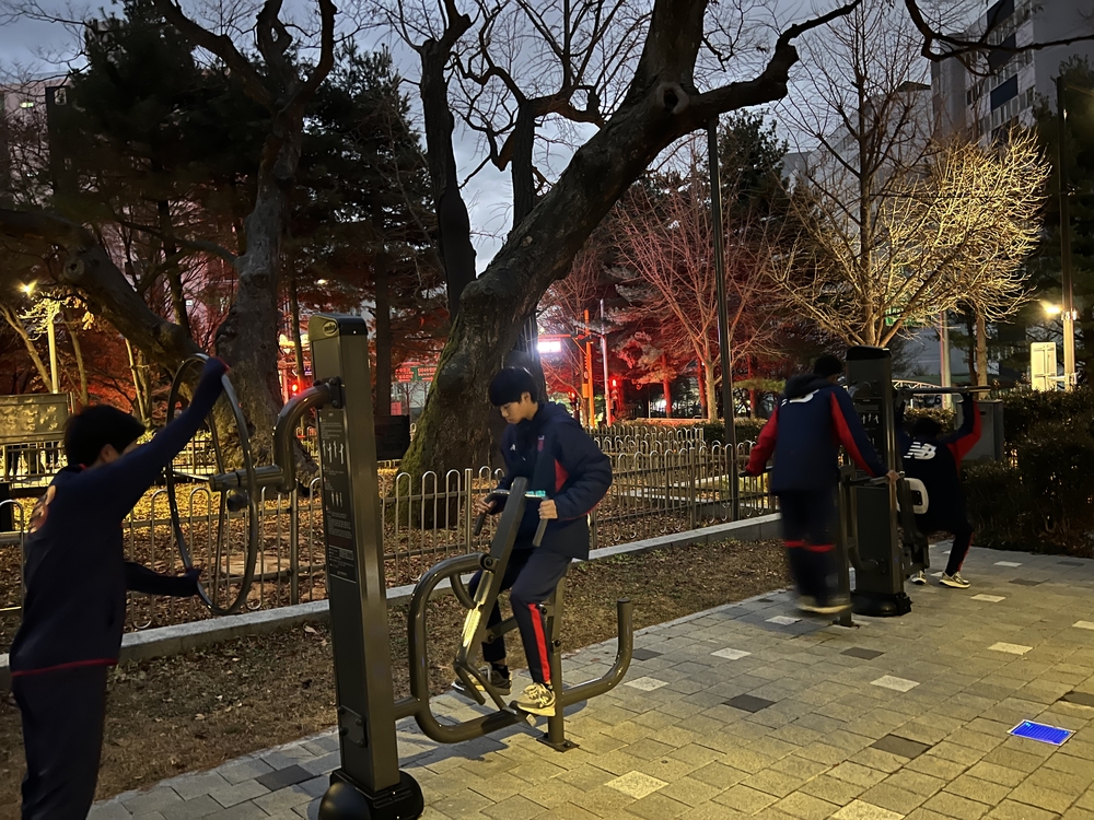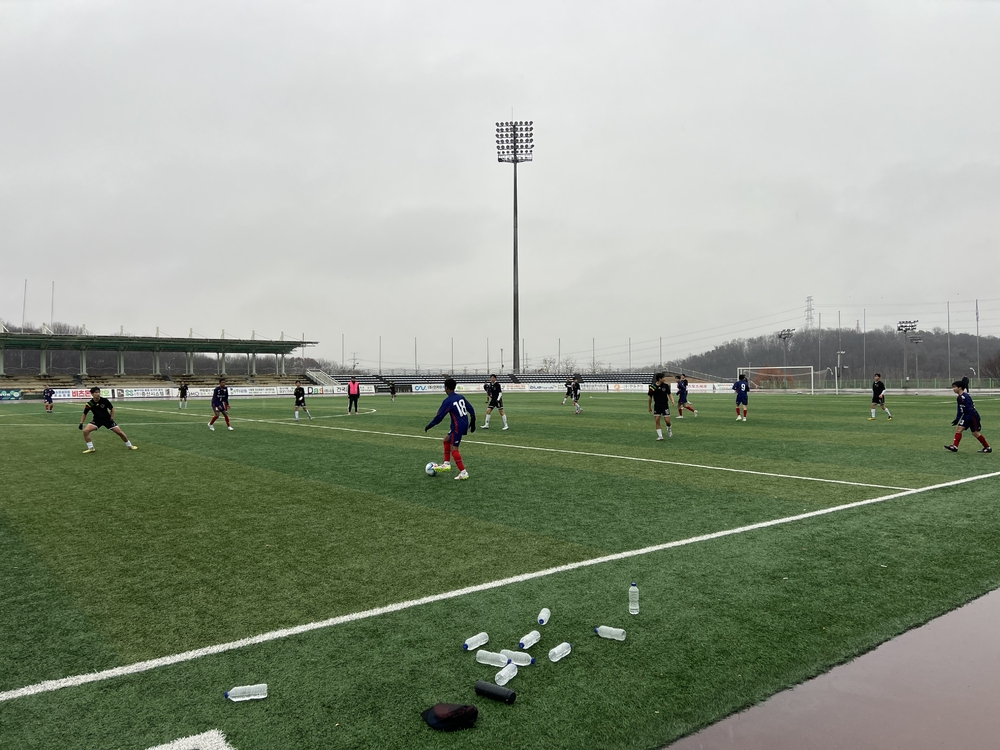 Der heutige Gegner ist die Sokgwan-Mittelschule, gegen die wir ab 14:00 ein Spiel mit drei 30-minütigen Abschnitten bestreiten. Die Gegner sind U-15-Spieler.