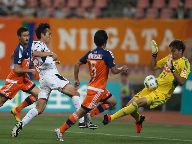2016.8.02[Spielinformationen] 2016 Meiji Yasuda J1 League 2. Runde, 6. Spieltag, 30.07. Albirex Niigata Spiel Insoo YU steht erstmals im J1-KaderMuriqui setzt zum Angriff anPass von KonoOgawa hält den Ball auf der linken SeiteZur Halbzeit gab es ein FeuerwerkHigashi im Zweikampf mit dem GegnerTorszene von HigashiMuriqui zieht zum Schuss abMaedas Schuss wird vom gegnerischen GK gehaltenTrainer Shinoda nach dem Sieg