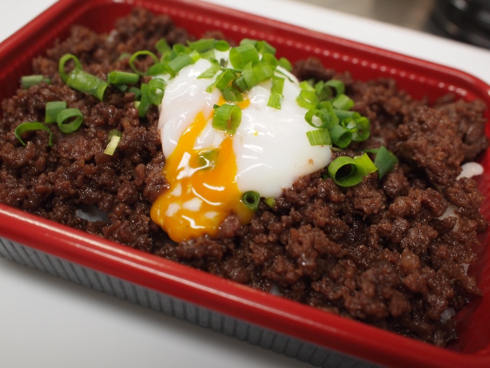 (4) Hackfleischschale vom Metzger mit Onsen-Ei ... 900 Yen