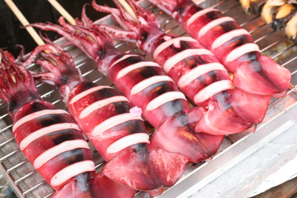 (12) Gegrillter Tintenfisch am Spieß (1 Stück)・・・600 Yen