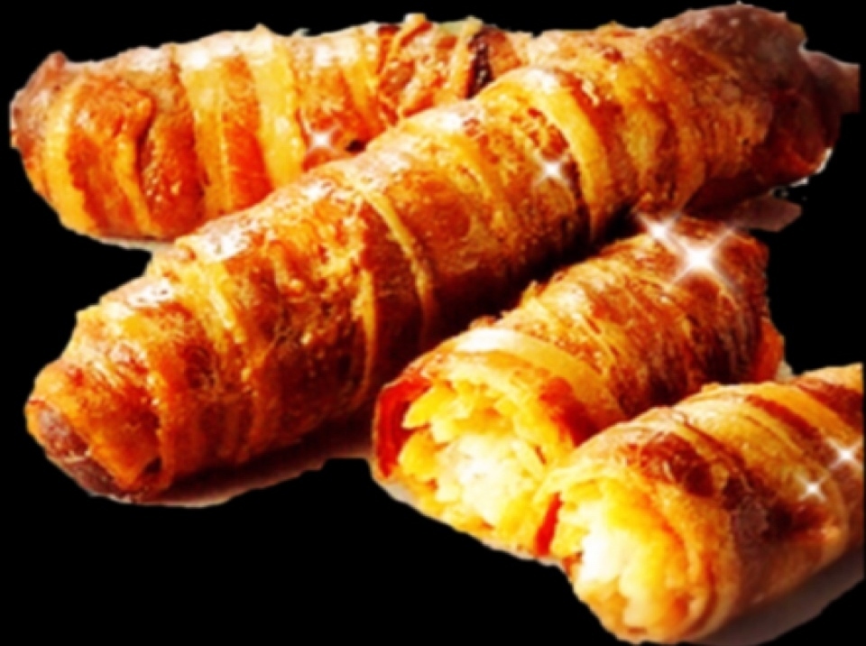 (13) Fleischumwickelter Reis・・・500 Yen Genieße den immer köstlichen fleischumwickelten Reis!! Das Salz aus Tokio ist das geheime Gewürz!
