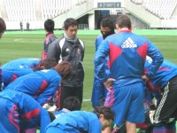 午前中の練習中には、翌日のプレシーズンマッチの先発メンバー11人がそろって激励に来てくれ、選手を代表して平山相太選手が挨拶をしてくれました。