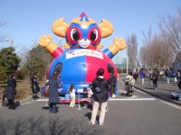 そして、フードコートでは、色々な食事が楽しめるようになっています。ホームゲーム時に、たくさんの人々がフードコート周辺で、のんびり楽しく過ごされている姿も恒例となりました。フードコートエリアには、毎回ドロンパも遊びにきてくれています!ドロンパもふわふわで遊びたいようですが、頭が大きすぎて入れないみたいです(笑)。