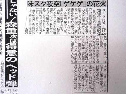 今朝の日刊スポーツでも告知を掲載をして下さっていますが、当日は「ゲゲゲの鬼太郎デー」があり、ハーフタイムに「花火ショー」もあります!