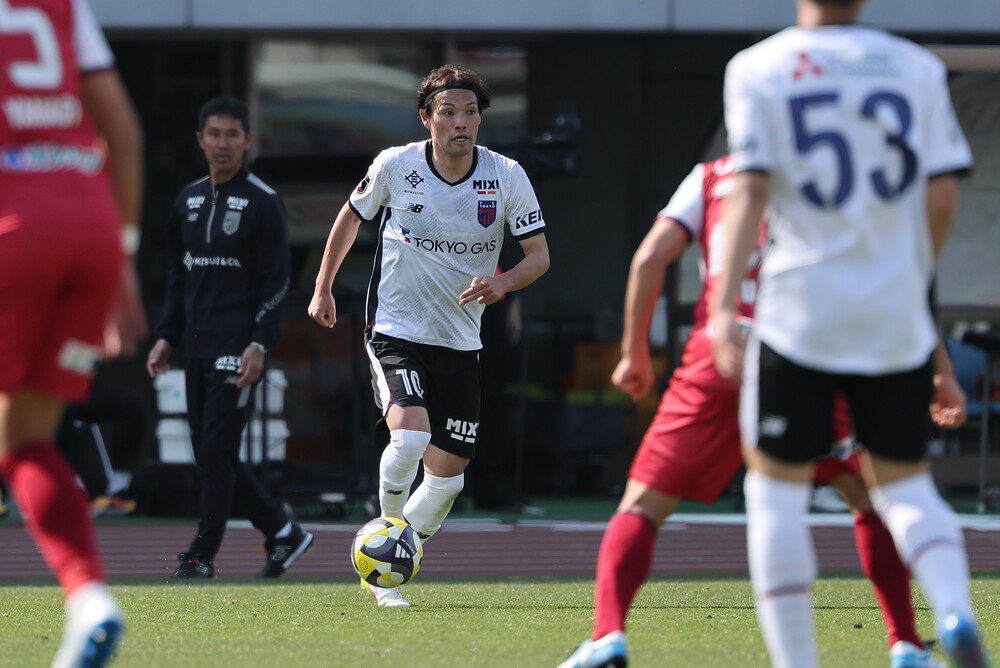 果敢なハイプレス、ハイライン戦術を採りながらボールをつないで攻めてくる奈良クラブ。東京は塚川孝輝選手を最前線に置き、ボランチに入った東慶悟選手が最終ラインに落ちながらビルドアップをサポート。しかし、相手の集中した守備を崩し切れず、なかなか決定機を生み出せない。