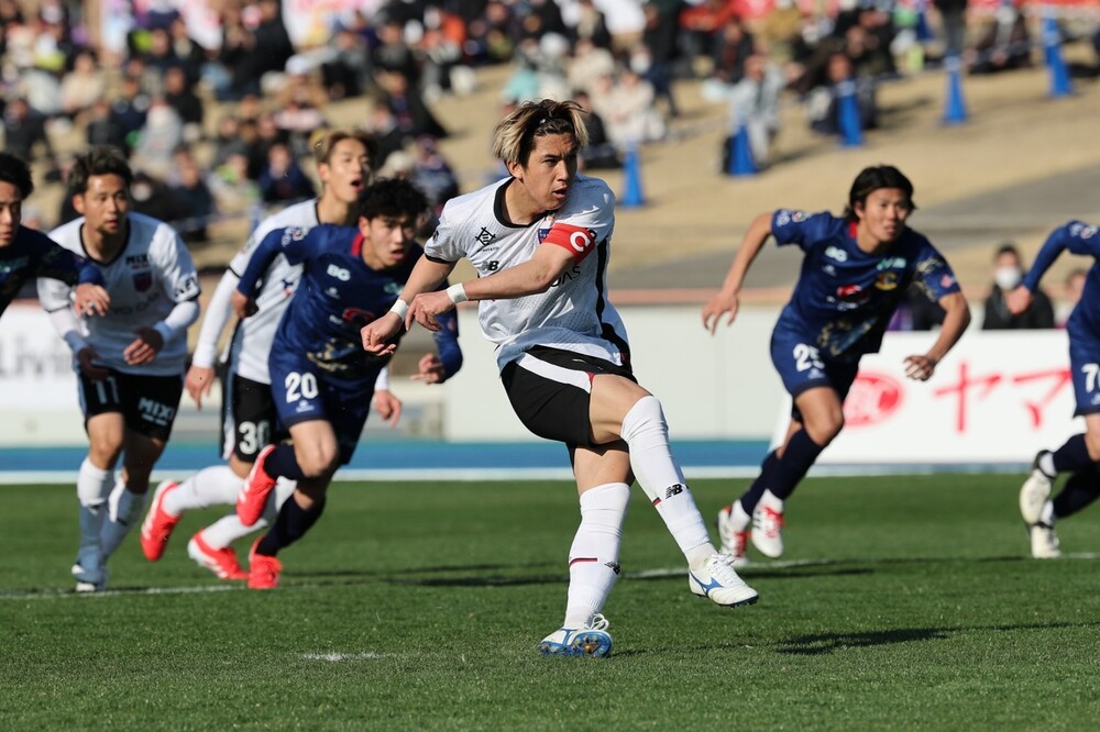 ペナルティエリア内で佐藤恵允選手が後ろから倒されてペナルティキックを獲得。これを安斎颯馬選手が右足で力強く蹴り込んでネットを揺らし、土壇場で先制点をゲット。キャプテンマークを託された背番号7の勝負強さが試合を決め、大苦戦の末に東京が2回戦進出の切符を勝ち取った。