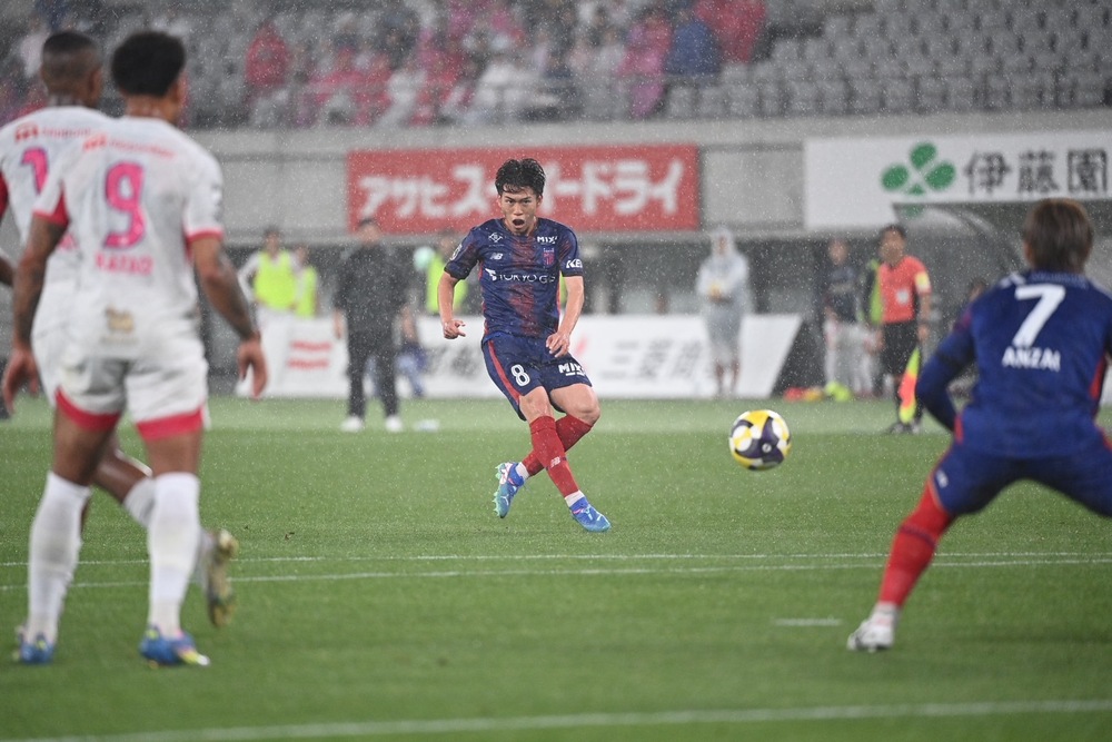 雨中ながら試合前から大声援を送るファン・サポーターの期待に応えるべく、開始直後から青赤の戦士たちがピッチで輝く。