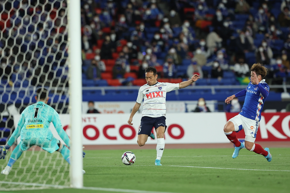 전반 중반 무렵부터 상대가 볼을 점유하는 시간이 계속되는 가운데, 도쿄는 하이프레스를 늦추지 않고 기회를 만들어 냈다. 전반 21분에는 상대가 수비진 사이에서 패스를 할 때 곤노 선수가 맹렬한 프레스를 걸어 볼을 끊었다. 골키퍼와 1대1 상황에서의 슈팅은 막혔고, 세컨드 볼을 디에고 선수, 이어서 아다일톤 선수도 따라붙었지만 3번 이어진 슈팅도 끈질긴 요코하마 FM 수비진에 막혔다. 전반 33분에는 하프라인 부근 왼쪽 쪽 위치에서 아베 선수가 볼을 빼앗자, 디에고 선수가 전방으로 운반했다. 반대쪽의 곤노 선수까지 볼을 움직여 곤노 선수가 자신 있는 지역에서 왼발 슈팅을 날렸으나 골의 바로 왼쪽 위로 벗어났다. 그 골킥의 퀵 스타트를 마츠키 선수가 노려 빼앗아 곧바로 슈팅으로 연결했으나, 이것은 골 오른쪽으로 빗나갔다.