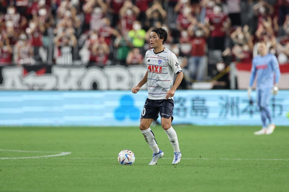 1st HALF――연속으로 2실점을 허용하며 어려운 전개에도쿄의 기본 포메이션인 4-3-3에 대해 고베는 같은 시스템으로 맞섰다. 자연스럽게 필드 위 각 포지션에서 1대1 상황이 많아졌다. 도쿄가 볼을 소유하면, 예를 들어 오른쪽 사이드에서는 콘노 카즈야 선수가 와이드하게 최대한 폭을 벌리고, 그 안쪽 하프 스페이스에는 사이드백 나가토모 유토 선수가 달려든다. 또한 왼쪽 윙인 와타나베 료마 선수도 이날 유동적인 움직임으로 중앙으로 진출해 상대를 교란하려 한다.