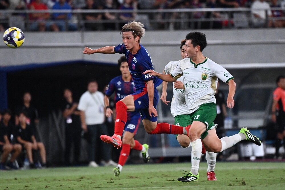 기세 있는 플레이로 승리를 쟁취하고 싶은 도쿄. 나가쿠라 선수가 몸을 내밀어 볼을 지키면, 사토 선수는 맹렬한 대시로 프레스를 걸어 팀을 구한다. 후반 추가 시간 6분 동안도 기세 있는 플레이가 계속된다. 상대의 세트 플레이를 연달아 니어사이드에서 튕겨내고, 후반 45+7분에는 다카 선수에서 고이즈미 케이 선수로 교체된다. 마지막 선수 교체로 시간을 쓰면서 경기장을 단단히 조인다.