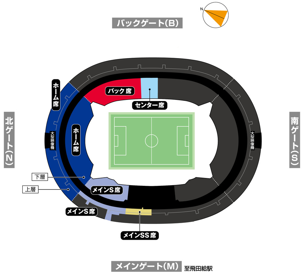 FC 도쿄 응원 구역(홈석, 백석, 홈 센터석, 메인 SS 북측, 메인 S 지정석 북측, 홈 SG, 백 SB)에서는 비지터 팀 응원이 불가능합니다.