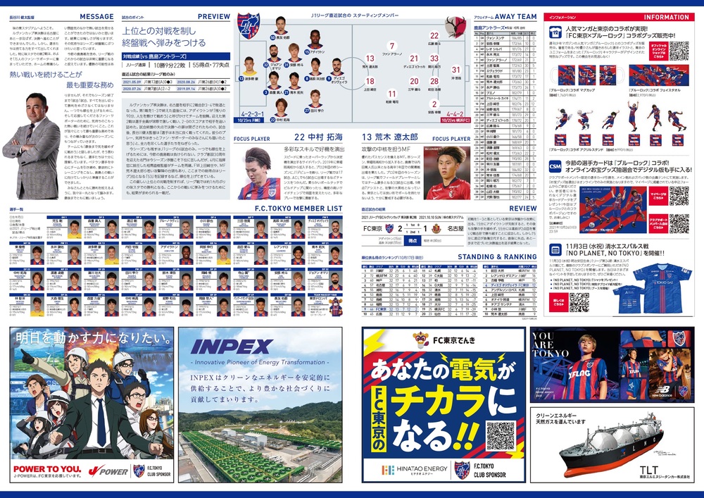 10월 23일(토) 2021 메이지 야스다 생명 J1리그 제33라운드 vs (14:00 킥오프/아지노모토 스타디움) 공식 매치데이 프로그램에 대해 아래와 같이 안내드립니다.
