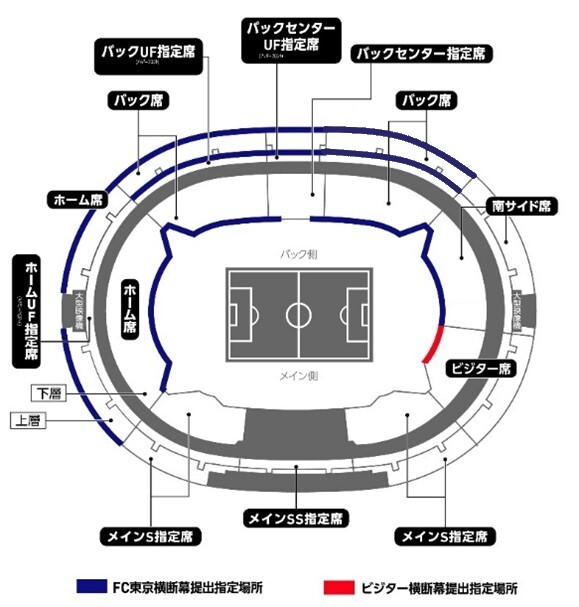 배너(깃발, 횡단막)의 사전 준비를 하시는 분은 개문 120분 전에 스타디움 부지 내의 "유로스포츠 아지노모토 스타디움점 옆 삼각 광장"에 모여 주시기 바랍니다. 사전 준비를 하시는 분도 체온 측정을 실시하며, 37.5도 이상인 경우 입장이 불가하오니 미리 양해 부탁드립니다. 또한, 개문 후에도 배너(깃발, 횡단막) 게시가 가능합니다.