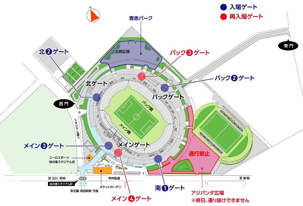 ・아지노모토 스타디움에는 일반 주차장이 없으니, 대중교통을 이용해 주시기 바랍니다.