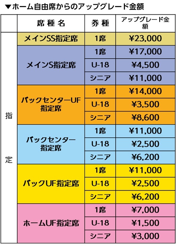 ・업그레이드를 희망하시는 분께서는 7월 17일(일) 주빌로 이와타전 이후 경기의 현재 좌석종류(자유석)를 리세일 및 양도하지 않도록 부탁드립니다.
