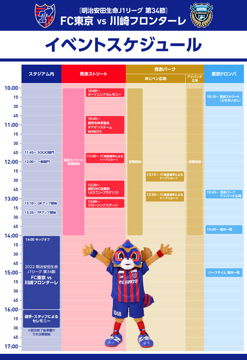 11월 5일(토) 2022 메이지 야스다 생명 J1리그 제34라운드 vs 가와사키 프론탈레(14:00 킥오프/아지노모토 스타디움)에서 실시하는 아오아카 스트리트 각종 이벤트 정보에 대해 알려드립니다.