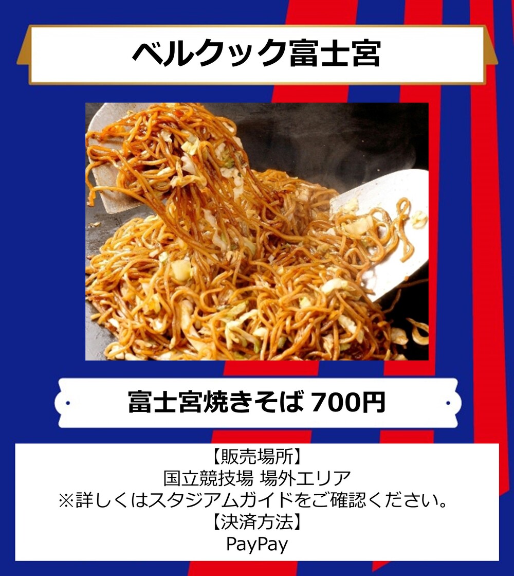 국립경기장의 내부와 외부에서도 한정 푸드를 비롯해 다양한 메뉴를 준비하고 있습니다. 클럽 역사상 최다인 50개 이상의 점포가 출점합니다!