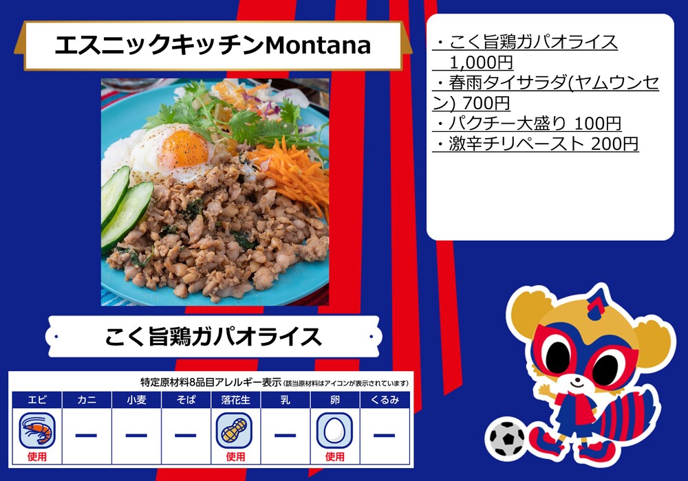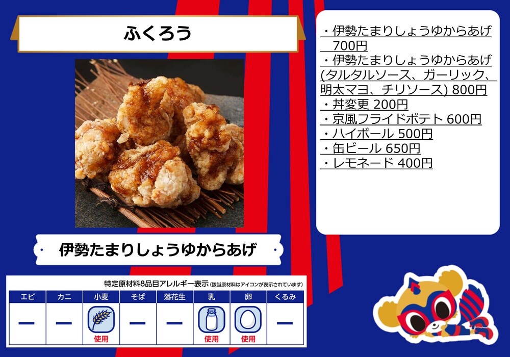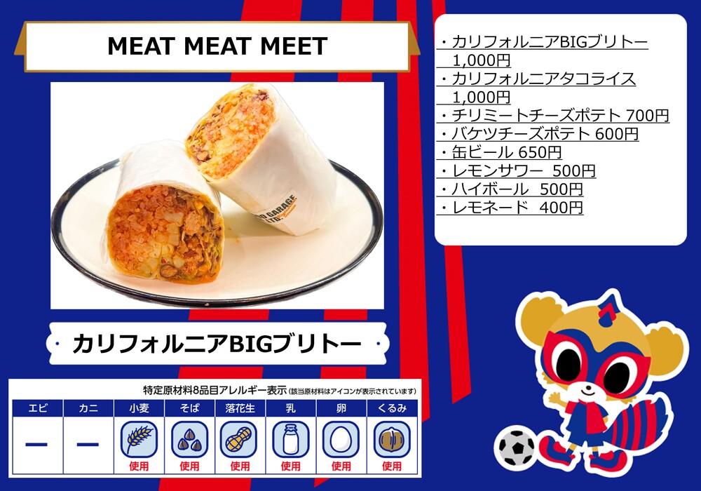 10월 1일(일) 감바 오사카전의 아오아카 파크 supported by TOKYO GAS(장외) 및 스타디움 내 콘코스(장내) 매장에서 판매하는 푸드 메뉴입니다.