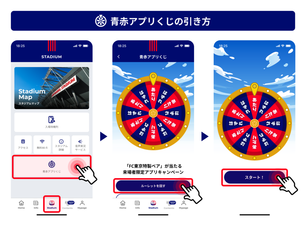 FC 도쿄 앱 내 Stadium 탭에 "청적 앱 복권" 배너가 있으니, 클릭하여 참가해 주세요.