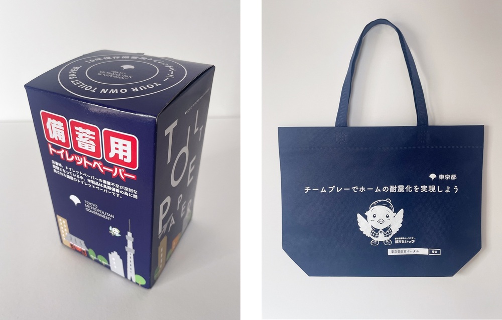 당일에는 지진 등으로 붕괴된 단독주택을 모방한 훈련용 설비가 등장합니다. 붕괴된 가옥에서 탈출 체험을 하시면 방재용품으로 비축용 화장지를 선물로 드립니다. 도쿄도 도시정비국의 마스코트 캐릭터 '도시세이삐' 일러스트가 들어간 가방에 넣어 드립니다.
