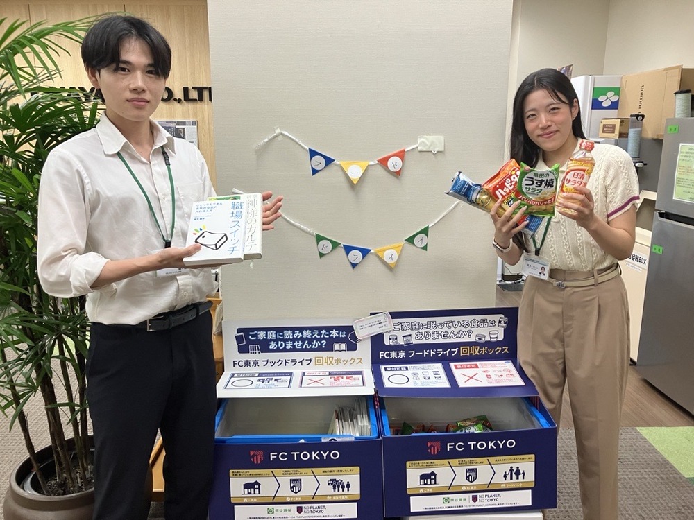 오카야강기 주식회사의 도쿄 본점에 전용 수거 BOX를 설치하고, 직원 여러분의 협력을 받아 가정 내 남은 식품이나 읽지 않게 된 책 등의 '로스'를 줄이기 위한 목적으로 푸드 드라이브·북 드라이브를 실시하였습니다.