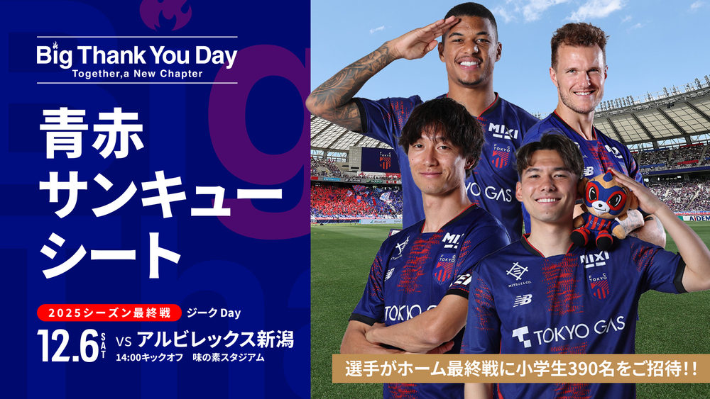 2025 시즌의 최종전을 홈 경기장인 아지노모토 스타디움에서 맞이하며, 『Big Thank You Day』를 개최합니다.