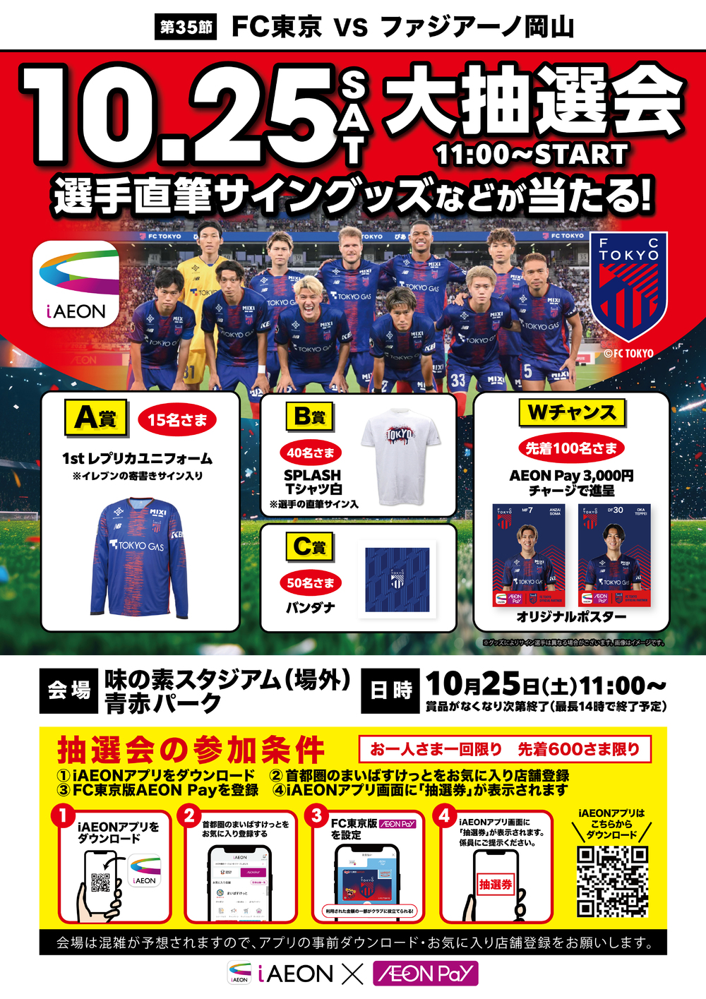 10월 25일(토) 2025 메이지 야스다 J1리그 제35라운드 vs 파지아노 오카야마(14:00 킥오프/아지노모토 스타디움)에서 공식 파트너인 이온 주식회사가 부스를 출점합니다.