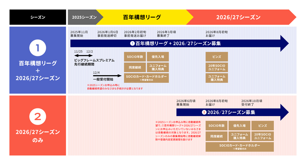 【11/19추가】【백년구상리그·2026/27시즌】연간 티켓(SOCIO) 신청 접수에 대하여