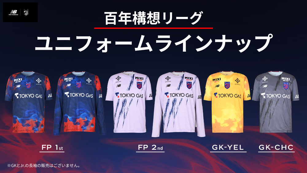 메이지 야스다 J1 100년 구상 리그의 새 유니폼은 1st KIT에 클럽 슬로건인 ‘도쿄가 열광’을 표현한 ‘불꽃’을 모티브로 한 디자인을 채용했습니다. 특별한 대회이기에 기존의 스트라이프 디자인 틀을 넘어 ‘열정’을 표현하고 있습니다. 또한, 엠블럼을 중앙에 배치하는 참신함도 새로운 포인트가 되고 있습니다.
