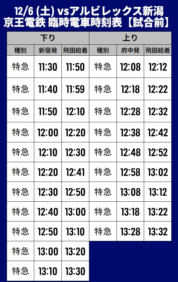 12월 5일(토) 2025 메이지 야스다 J1 리그 제38절 vs 알비렉스 니가타(14:00 킥오프/아지노모토 스타디움)에서 운행되는 임시 교통 접근(철도), 셔틀버스·노선버스에 대해 안내드립니다.