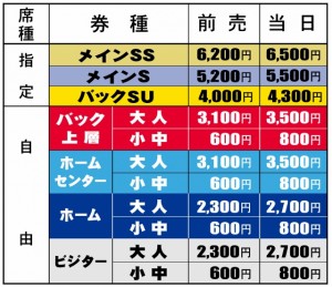 ※『백 SB 지정석』『홈 SG 지정석』은 SOCIO만 판매합니다.