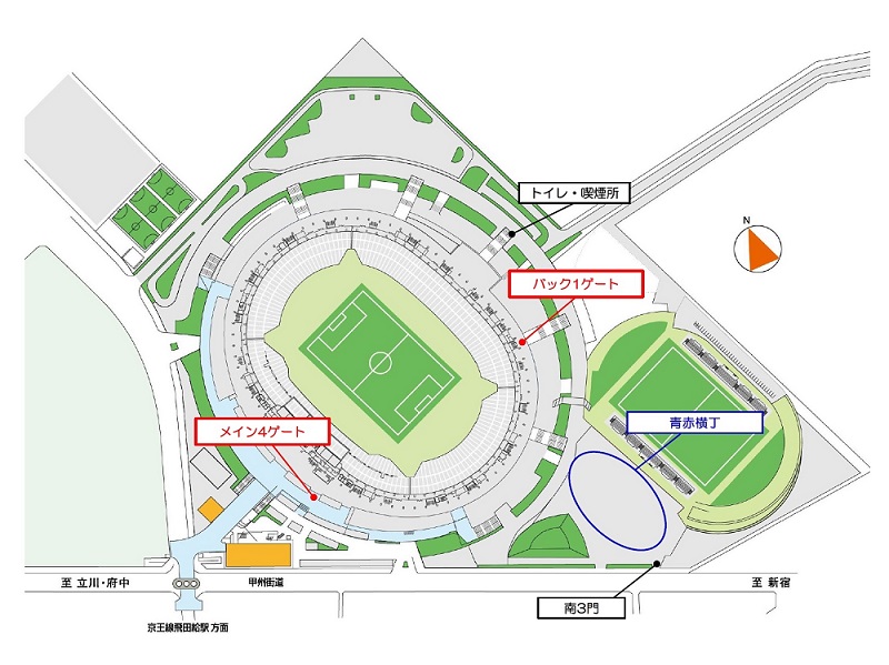 스타디움 입장 후에는 청적 가로초로 가실 때 ‘메인 4게이트’ 및 ‘백 1게이트’를 이용해 주시기 바랍니다.