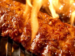 두툼하게 썬 스페어립입니다. 술이 술술 넘어가는 맛이에요. 숨은 맛은 도쿄 E 마크 우미노세이 아라시오입니다.