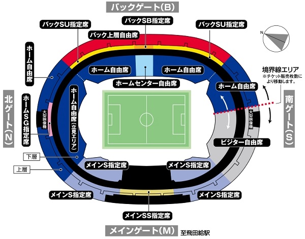 메이지 야스다 생명 J1 리그와 동일한 좌석 배치・가격입니다.