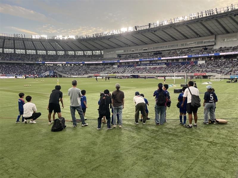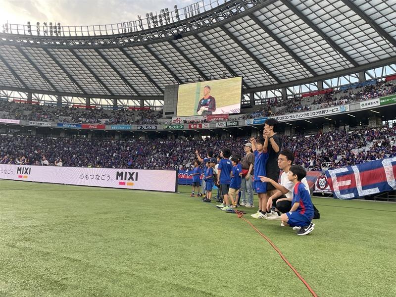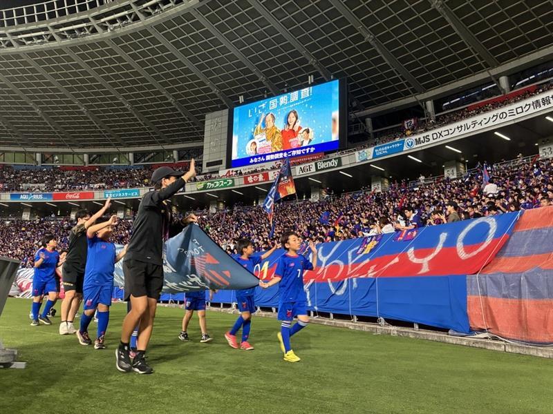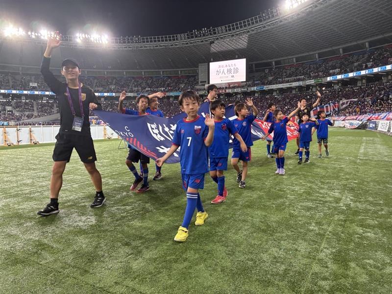 하프타임에는 FC 도쿄 축구·풋살 스쿨에 다니는 2학년, 5학년이 FC 도쿄 축구·풋살 스쿨의 배너를 들고 피치를 한 바퀴 돌았습니다!