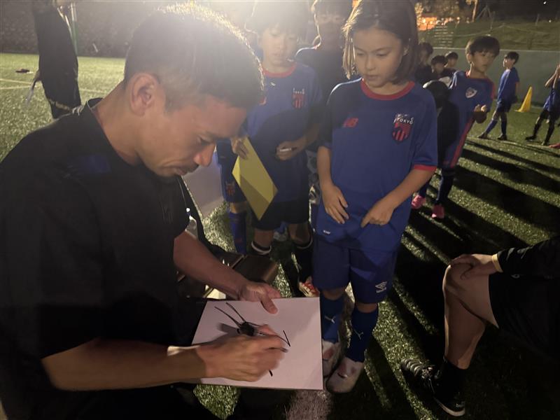 그 후에는 스쿨생들이 준비해 온 FC 도쿄 굿즈, 이탈리아 시절 유니폼, 일본 대표팀 유니폼 등에 나가토모 선수가 한 명 한 명 정성스럽게 사인을 했고, 스쿨생들은 긴장하면서도 감사한 마음을 눈을 마주치며 확실히 전했습니다!