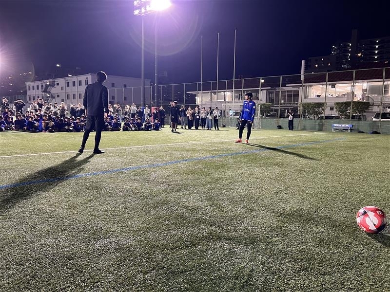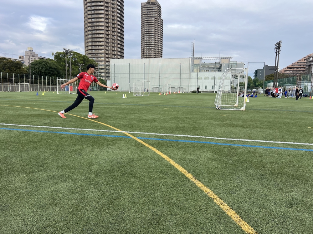 질문 시간 후에, 고토 선수가 펀트킥을 선보이며 멀리 정확한 킥을 보여주자, 예쁜 킥에 스쿨생들로부터 큰 환호와 박수가 터져 나왔습니다!