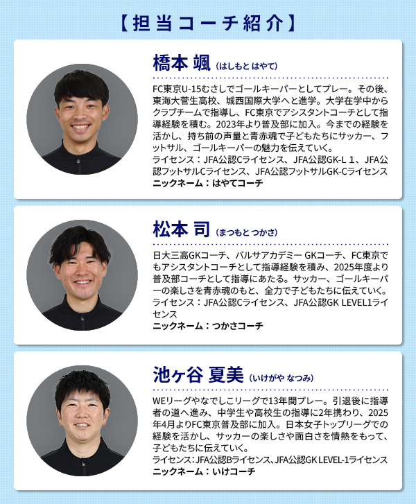 ・ほかFC東京の普及部コーチが担当いたします。