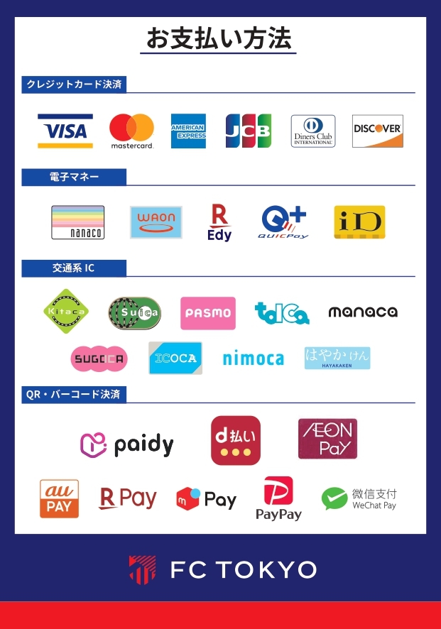 明治安田J1百年構想リーグから、ホームゲーム開催時におけるグッズ売店およびガチャガチャ売店にて、完全キャッシュレス決済を導入いたします。各種クレジットカード、電子マネー、QRコードをご利用いただけます。