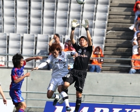 (Qual foi a razão para não conseguirem marcar gols mesmo com Masaru HASEGAWA e Kajiyama em campo?) Não é porque esses dois estão presentes que conseguimos marcar. Os dois jogadores do Shimizu na posição de meia ofensivo vieram para marcar nossos volantes, e essa foi uma das estratégias que enfrentamos. Nesse contexto, não se tratava apenas de passar a bola para os volantes, mas também de atacar pelas laterais, abrir o adversário para desequilibrar, e com passes verticais, os jogadores da segunda linha avançarem para explorar as brechas do adversário. Temos treinado isso, então está melhorando... Mas acredito que precisamos aumentar a precisão.
