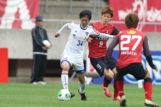 Mesmo depois, diante da forte pressão do Kashima, a conexão entre os jogadores não funcionava, e não conseguiam controlar a bola para avançar. Aos 39 minutos, o chute de Lucas dentro da área, após passe de Maruyama, acertou o poste inferior esquerdo. Lee reagiu ao rebote, mas não conseguiu empurrar a bola para dentro. Então, aos 45 minutos, na cobrança de falta pelo lado esquerdo, a bola enviada por HASEGAWA foi afastada pelo zagueiro adversário que disputava com Morishige. Do rebote, Tokunaga chutou de fora da área direita, e Watanabe, de dentro, mudou o ângulo, fazendo a bola entrar na rede do lado esquerdo. Conseguiram empatar e seguiram para o segundo tempo.