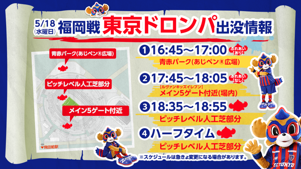 18 de maio (Qua) 2022 J-League YBC Levain Cup Fase de Grupos Rodada 6 vs Avispa Fukuoka (19:00 Início / Ajinomoto Stadium) TOKYO DOROMPA aparecerá conforme abaixo.