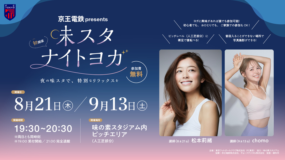 Através de um novo projeto de evento, com o objetivo de criar pontos de contato com novos clientes que ainda não conhecem o FC Tokyo, além de fomentar ainda mais a comunidade de fãs e apoiadores, realizaremos o evento de yoga organizado pelo clube, 'Keio Dentetsu presents Ajinomoto Night Yoga'.