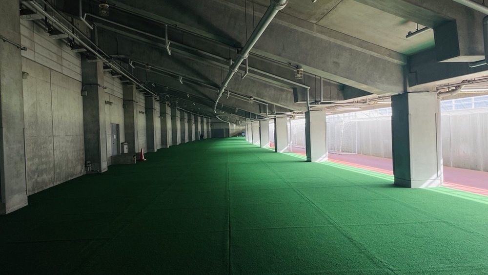 Área do campo dentro do Ajinomoto Stadium (parte de grama artificial)