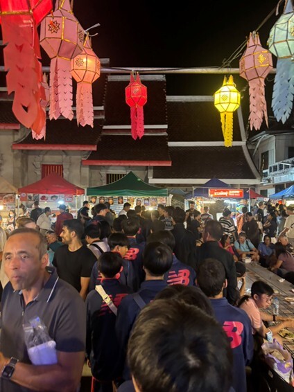 À noite, fomos ao mercado noturno, onde aproveitaram um ambiente que não podem experimentar no Japão.